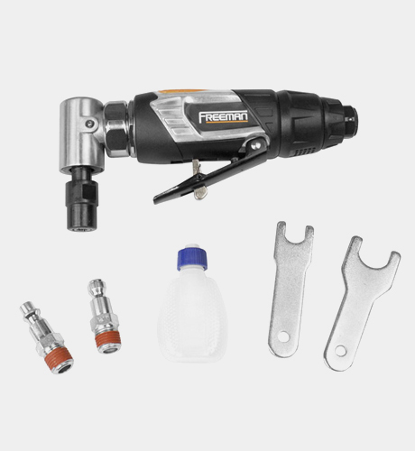 Freeman FAT14ADG 1/4" 角向气动刻磨机广泛应用于各种模具(鞋模、轮胎模、笔模、各类高低压电器模具、家用电器模具、塑壳开关模具等)、五金制品(水龙头、拉链、五金工具及各类成套设备箱体等)、及玻璃、石材、工艺品、手饰、线路板制造等一切需要毛坯修整、切削、研磨、修整作业的行业。